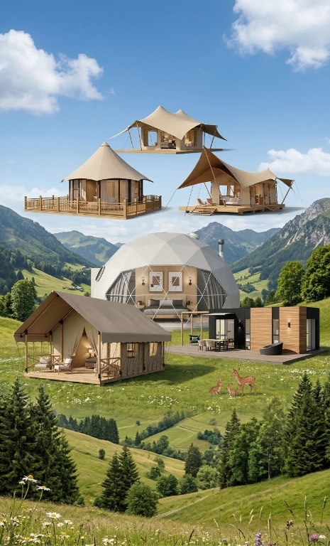 - Explore a 14-unit safari tent glamping solution within a 106 hectares family ranch glamping resort, offering immersive pastoral experiences, nature-based stays, and high-ROI outdoor hospitality design.