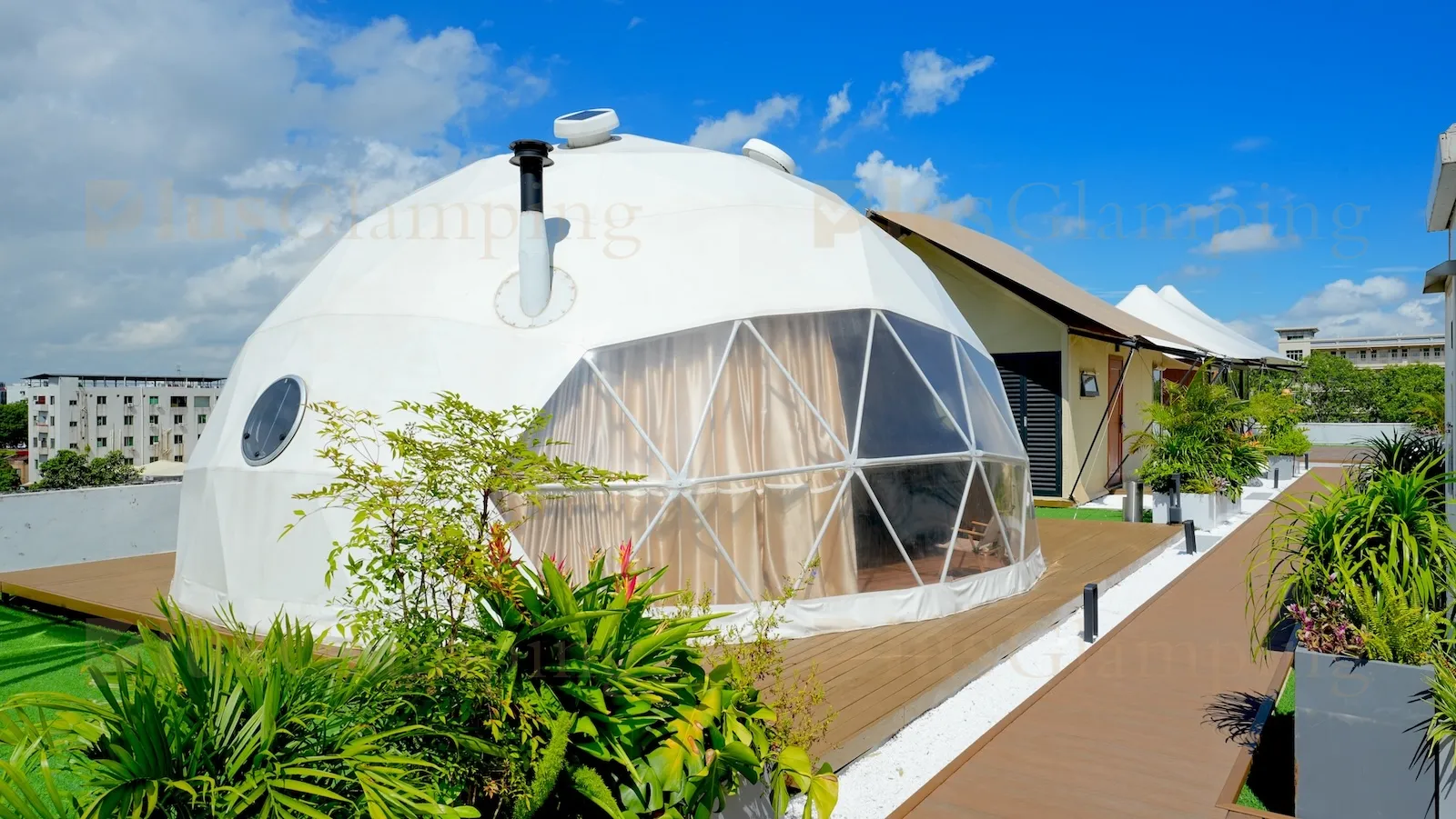 A luxury glamping solution must withstand the test of all four seasons to achieve a high return on investment. At Plus Glamping, our 8m luxury glamping dome tent is carefully designed for durability and easy maintenance, using premium materials and customizable comfort options to drive sustainable operations and high occupancy rates: