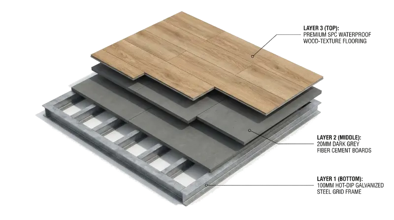 - 2. Substrate Layer: 20mm Fiber Cement Board