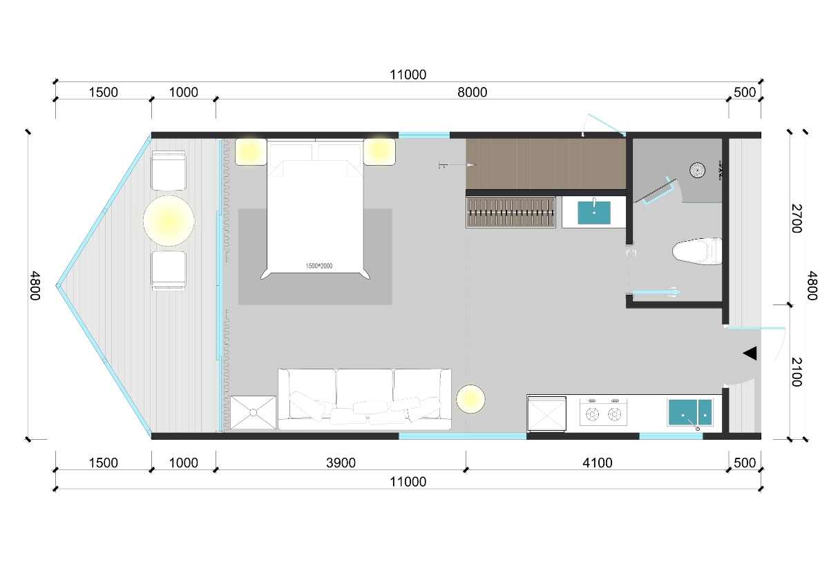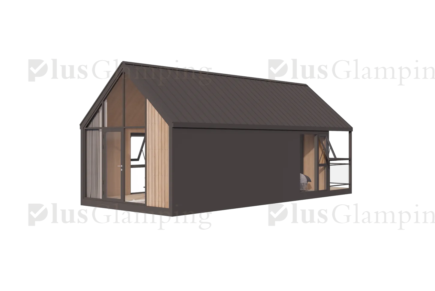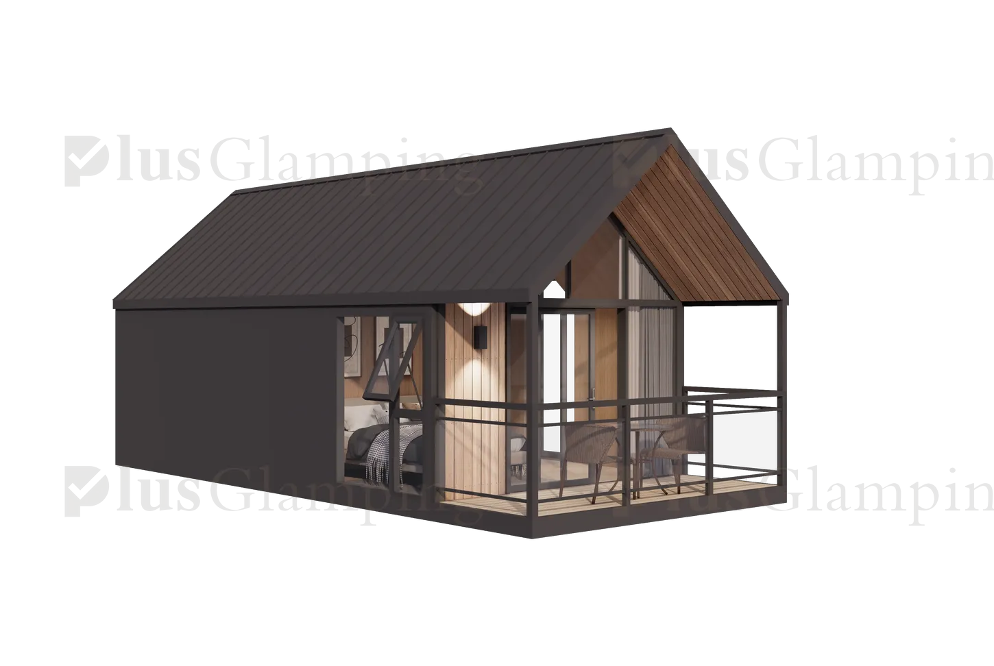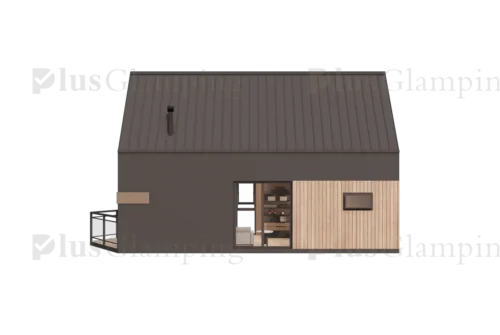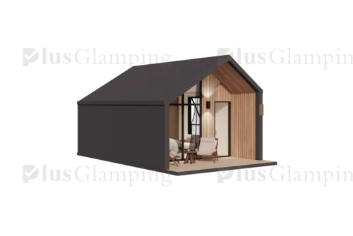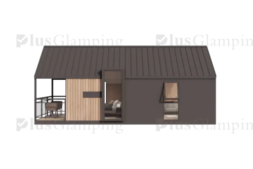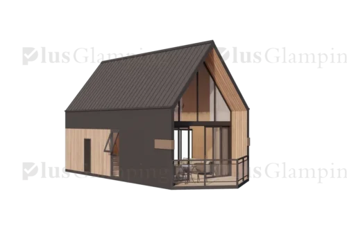 Two-Story Luxury Glamping Cabin (N7): The deluxe N7 elevates the guest experience with a two-story loft configuration. This model maximizes vertical space, providing a clear separation between living and sleeping areas, or dual sleeping quarters, making it ideal for premium glamping suites that demand higher nightly rates.