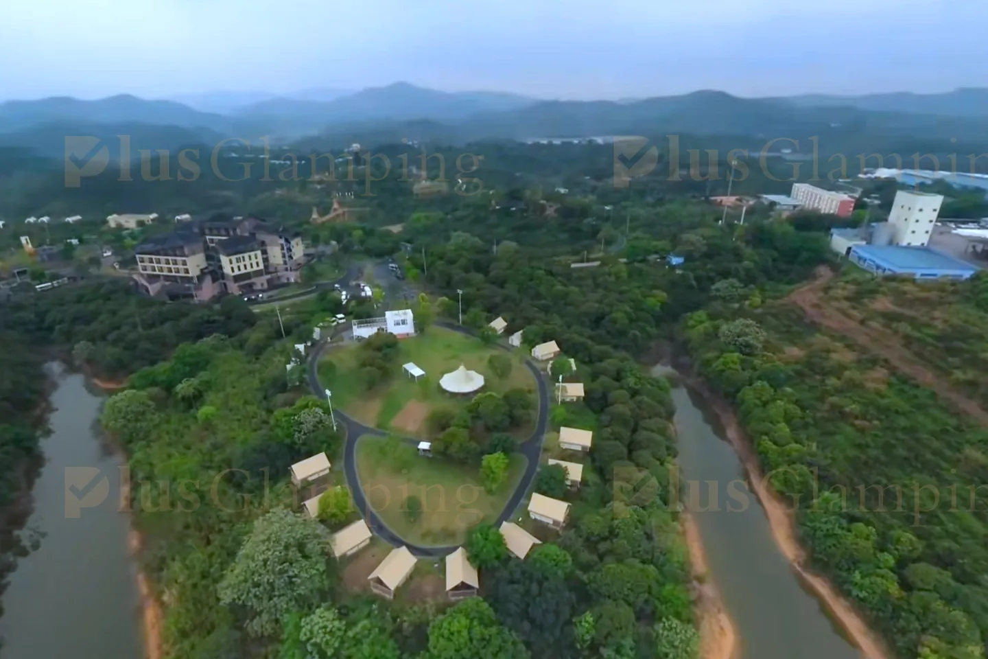 The safari tent units act as a premium yet cost-efficient accommodation layer, enhancing the overall revenue mix of the glamping resort.